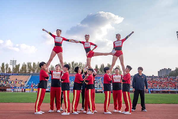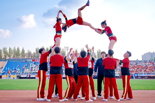技巧啦啦操队员们以昂扬的姿态