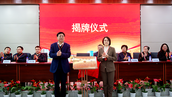 沈阳市妇联副主席刘锐与校长宋吉鑫共同为“开云登陆入口妇女联合会”揭牌。
